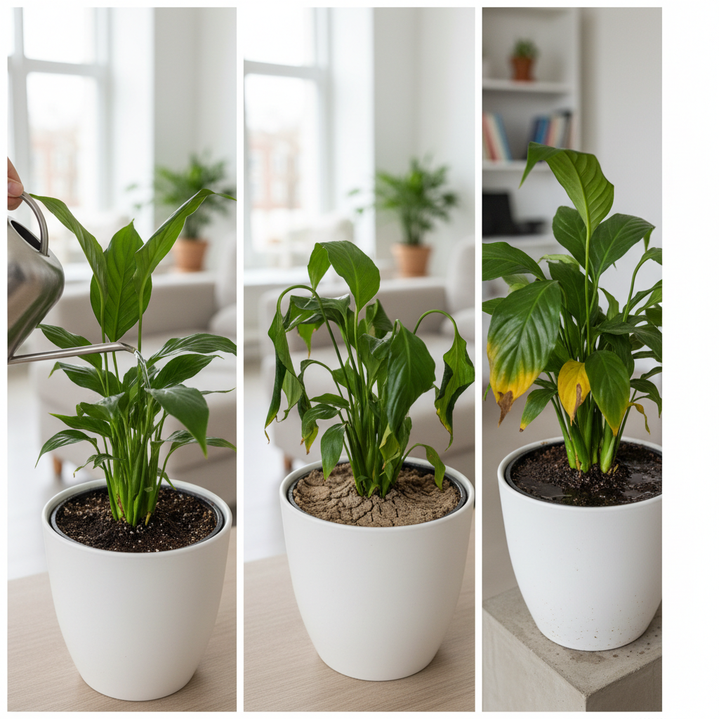 O lírio da paz gosta de solo levemente úmido, mas não encharcado. O erro mais comum é exagerar nas regas.