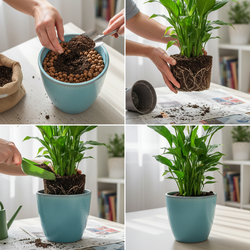 A seguir, um passo a passo prático para plantar lírio da paz ou replantar uma muda em vaso maior.